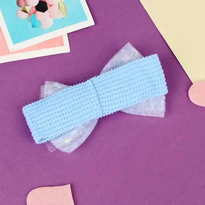 Повязка для волос "Выбражулька" прозрачный бант звёзды, 16х3 см, голубой