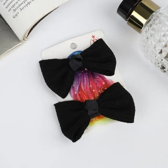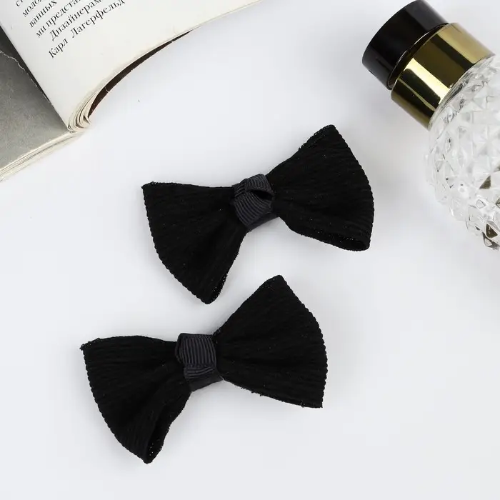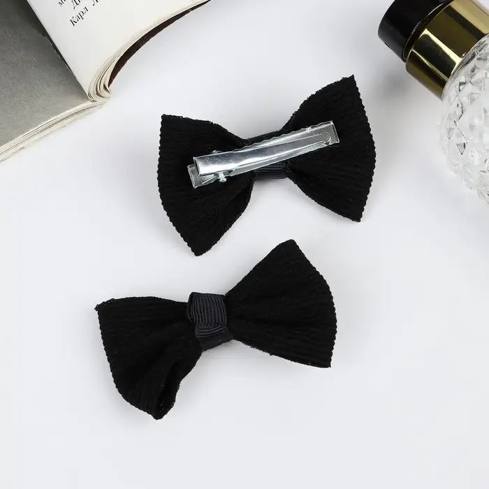 Зажим для волос "Школьница" (набор 2 шт) полосы, 6 см, чёрный