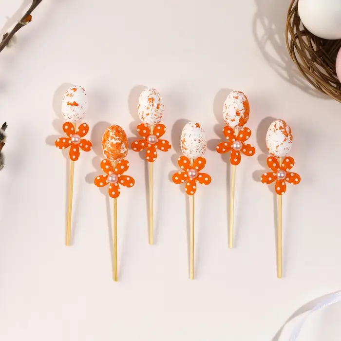 Шпажки яйцо цветочек оранжевый, набор 6 шт.