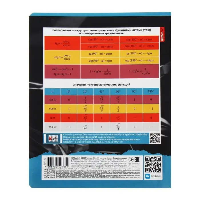 Тетрадь предметная "Следствие ведут ученики", 48 листов в клетку "Геометрия", обложка мелованный картон, выборочный лак, со справочным материалом