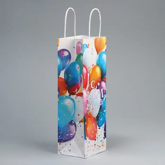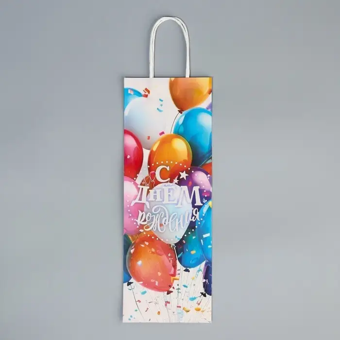 Пакет подарочный под бутылку, упаковка, «С Днём рождения», белый крафт, 13 х 36 х 10 см