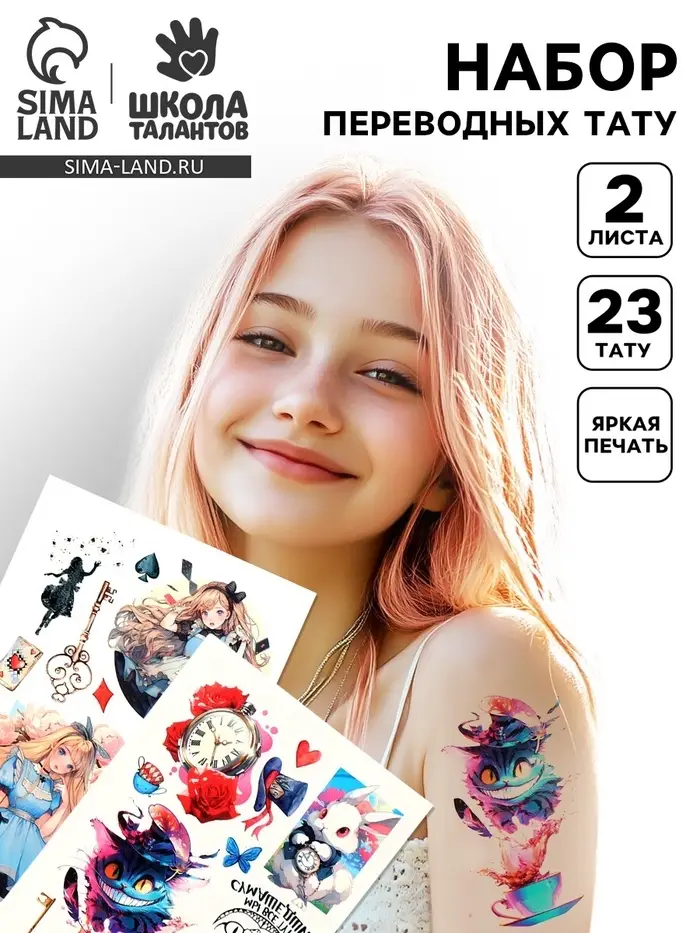 Переводные татуировки детские «Страна чудес», тату — 2 листа
