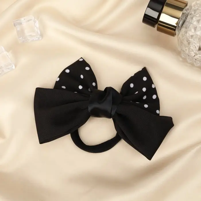 Резинка для волос бант «Школьница», горох, 9×8 см, чёрная