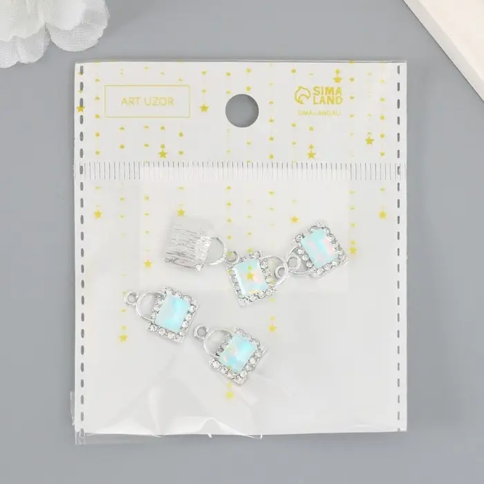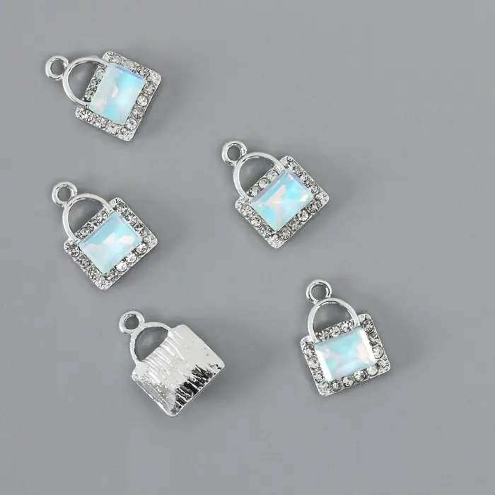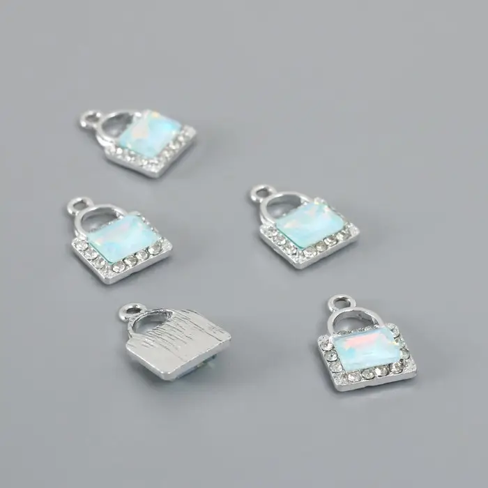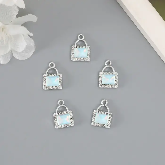 Декор для творчества металл, страз "Сумочка" голубой 1,7х1,2 см