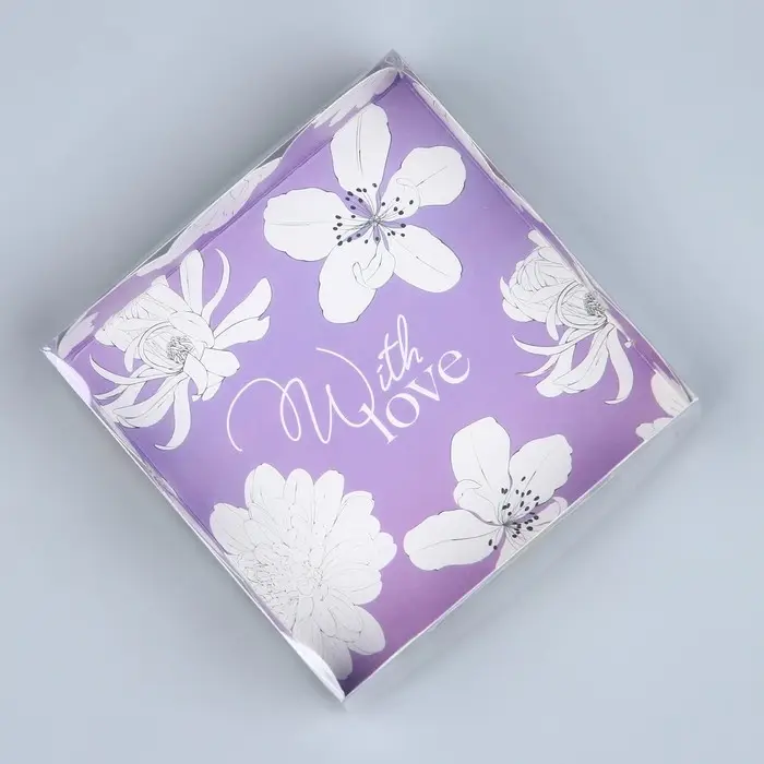 Коробка для печенья, кондитерская упаковка с пластиковой крышкой, With love, 10.5 х 10.5 х 3 см