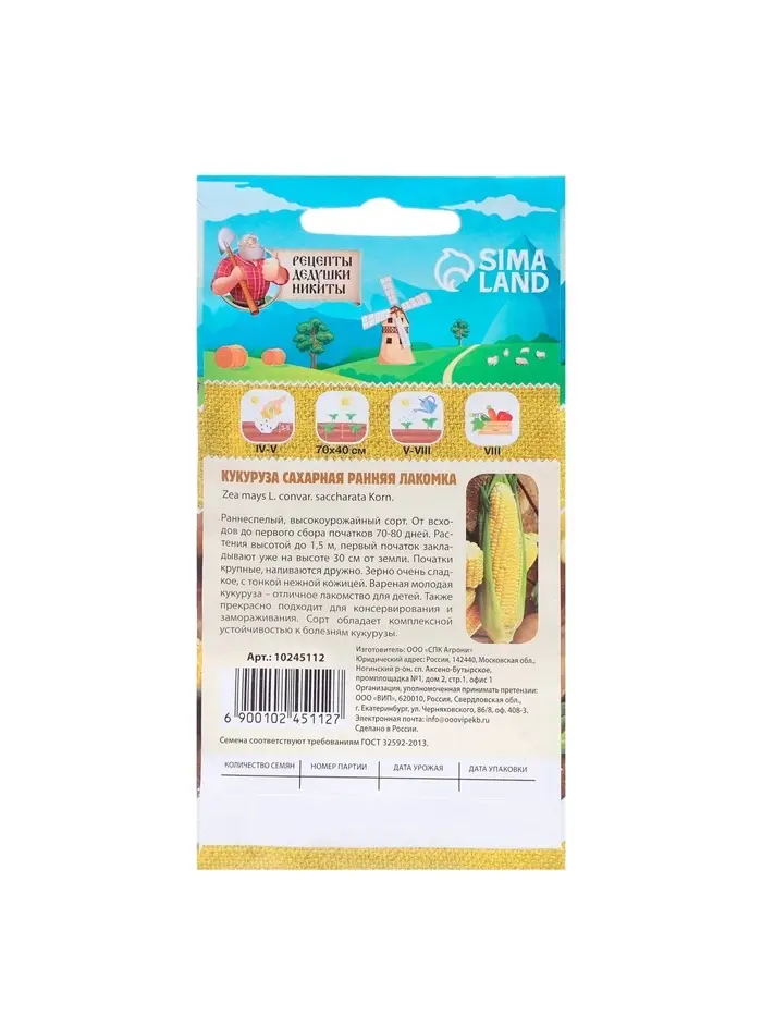 — Цвет: Зерна имеют яркий желтый цвет, который придает початкам аппетитный вид и свидетельствует о высоком содержании сахаров.