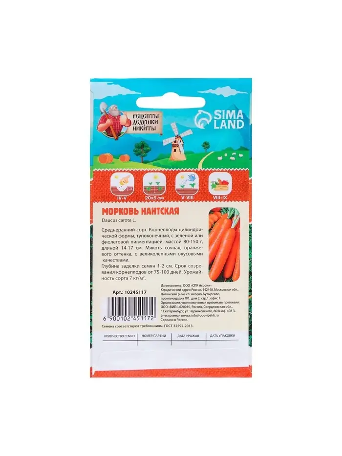 — Вкус: Сладкий и сочный вкус, что делает морковь "Нантская 4" идеальной для употребления в сыром виде, а также для приготовления различных блюд и соков.