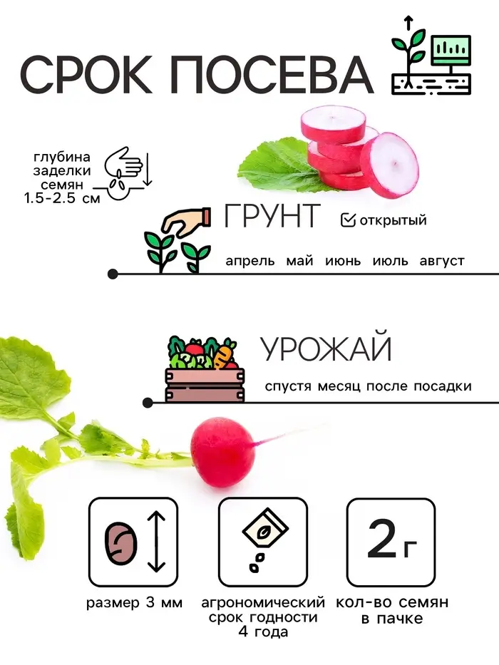 — Срок созревания: 20-25 дней от момента посева до сбора урожая.