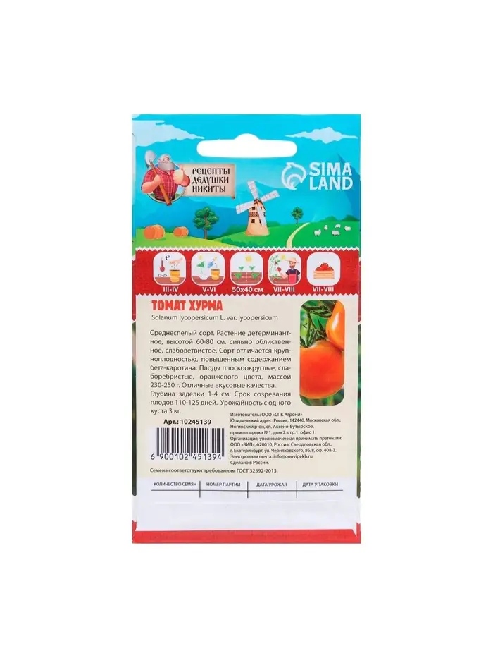 — Срок созревания: Среднеспелый сорт, созревает за 100-120 дней от момента высадки семян.