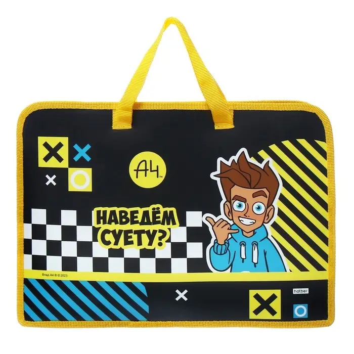 Папка с ручками А4, 340 х 245 х 35 мм, пластиковая, молния вокруг, Hatber "Влад А4"