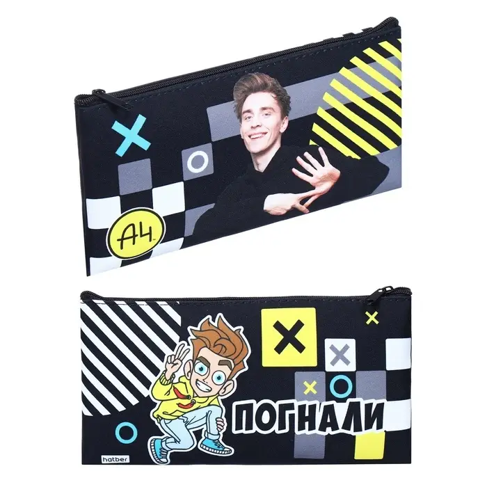 Пенал мягкий, 1 отделение, 110 х 205 мм, плоский, Hatber "Влад А4" чёрный NPk_63163