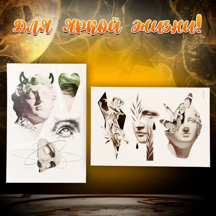 Набор для творчества «Скульптура» — это идеальное решение для тех, кто ценит оригинальность и стиль. Два листа с семью реалистичными татуировками, вдохновленными древнегреческими скульптурами, позволят вам создать неповторимый образ.