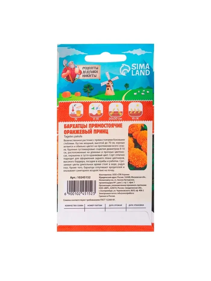 - Семена Бархатцев "Оранжевый принц" — это отличный выбор для создания ярких и солнечных клумб. Эти цветы с их насыщенным оранжевым цветом привлекут внимание и добавят тепла в ваш сад.С Бархатцами "Оранжевый принц" ваш сад станет настоящим украшением, радуя глаз яркими цветами и создавая атмосферу праздника!