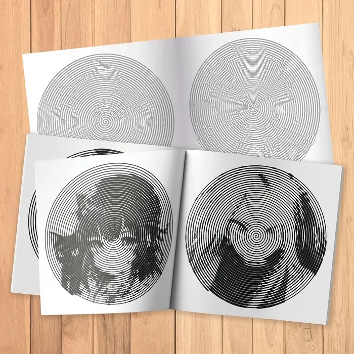 - Эффект спиральной раскраски придает объем изображению и добавляет интерактивности.