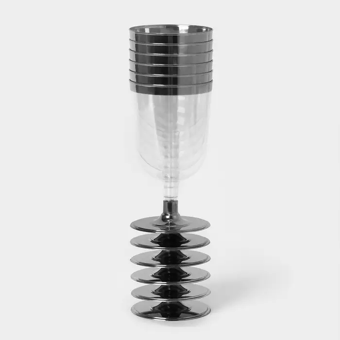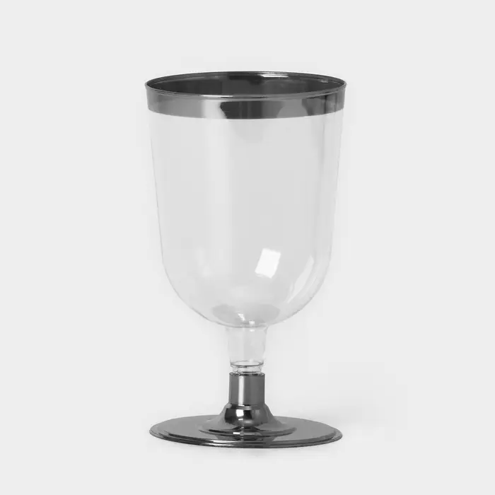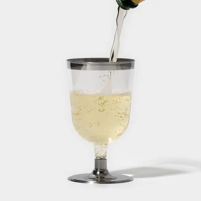 Бокал пластиковый одноразовый для вина «Кристалл», 200 мл, с металлизированными каемками, цвет прозрачный, 6 шт/уп
