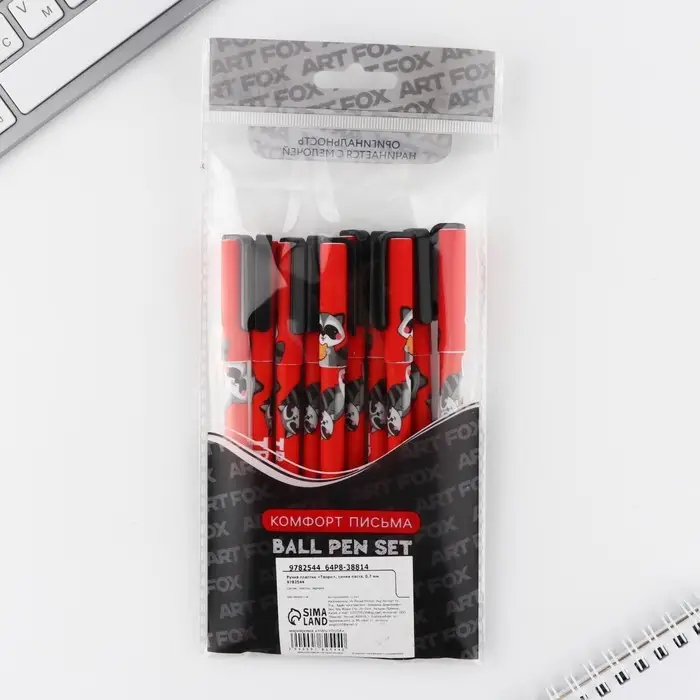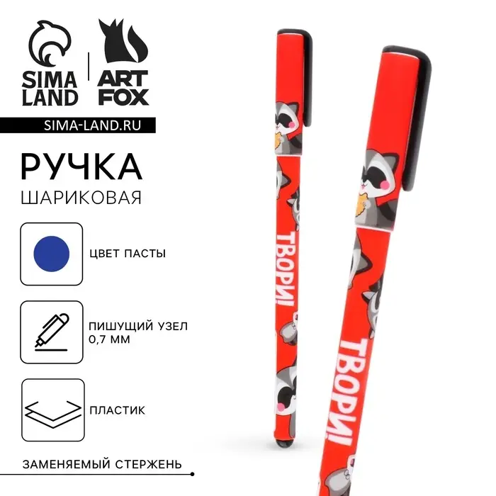 Ручка шариковая, синяя паста 0.7 мм, с колпачком, пластик «Енотики»