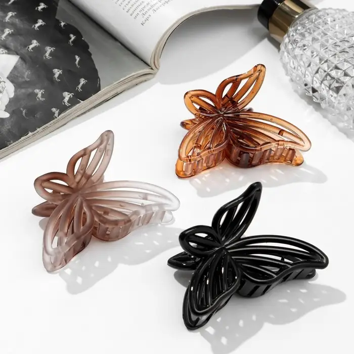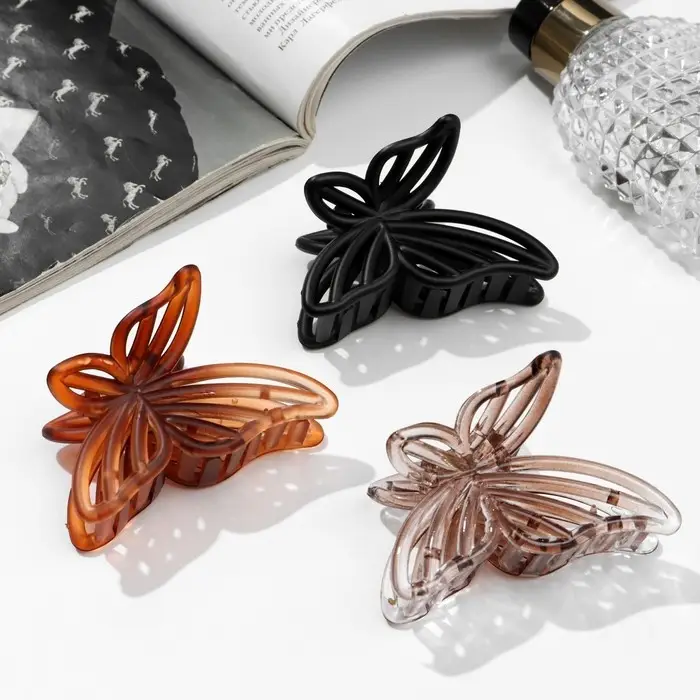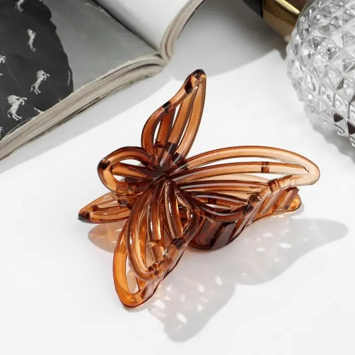Крабик для волос «Глянец», бабочка полоски, 7 см, МИКС