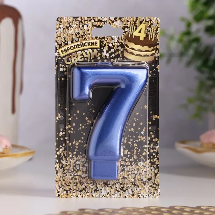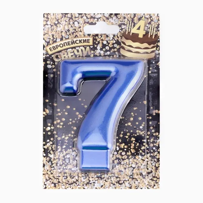 Свеча для торта «Европейская ГИГАНТ», цифра 7, 7 см, синий металлик