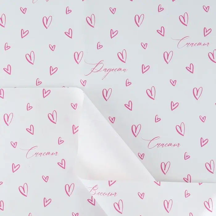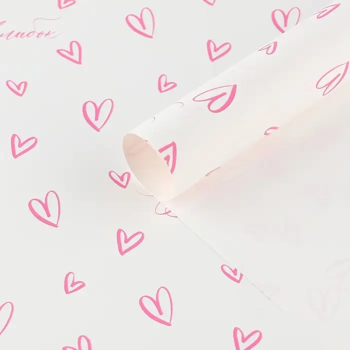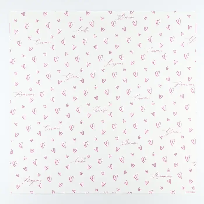 Плёнка упаковочная для цветов «С любовью», матовая, сердца, белая, 57 х 57 см