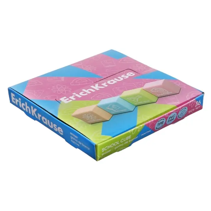 Ластик ErichKrause "School cube", 22 х 22 х 17 мм, синтетика, микс