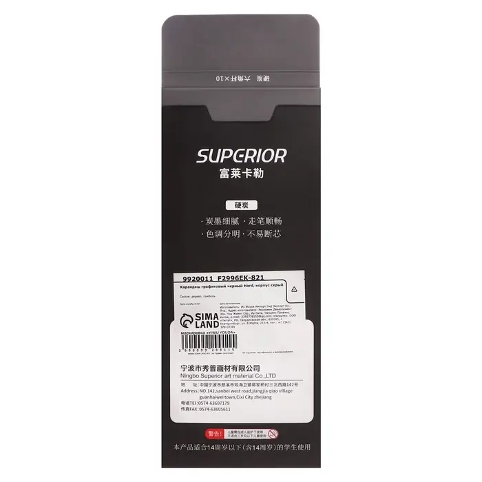 Карандаш угольный чёрный, Hard, корпус серый