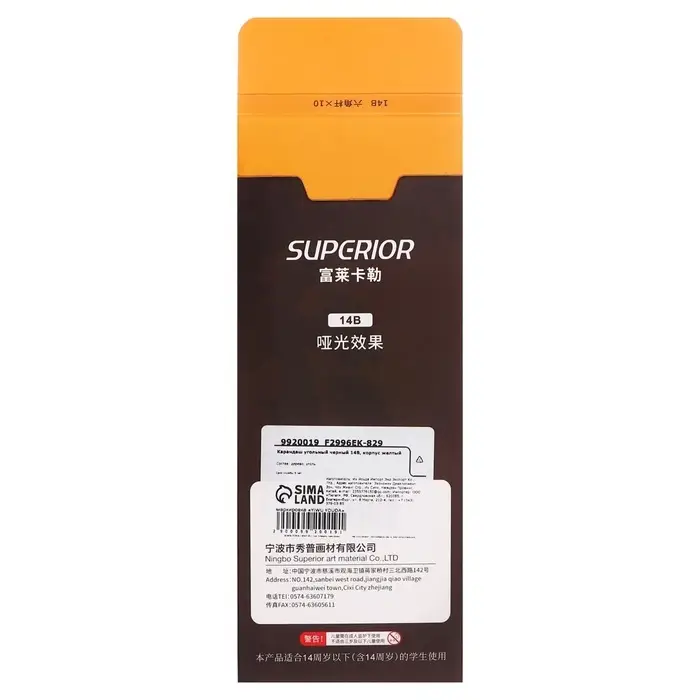 Карандаш угольный чёрный 14 В, корпус жёлтый