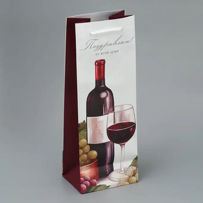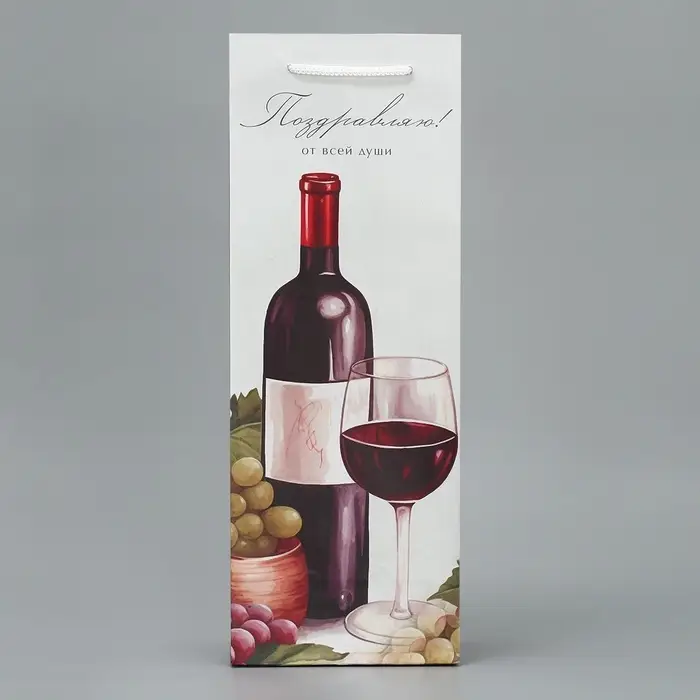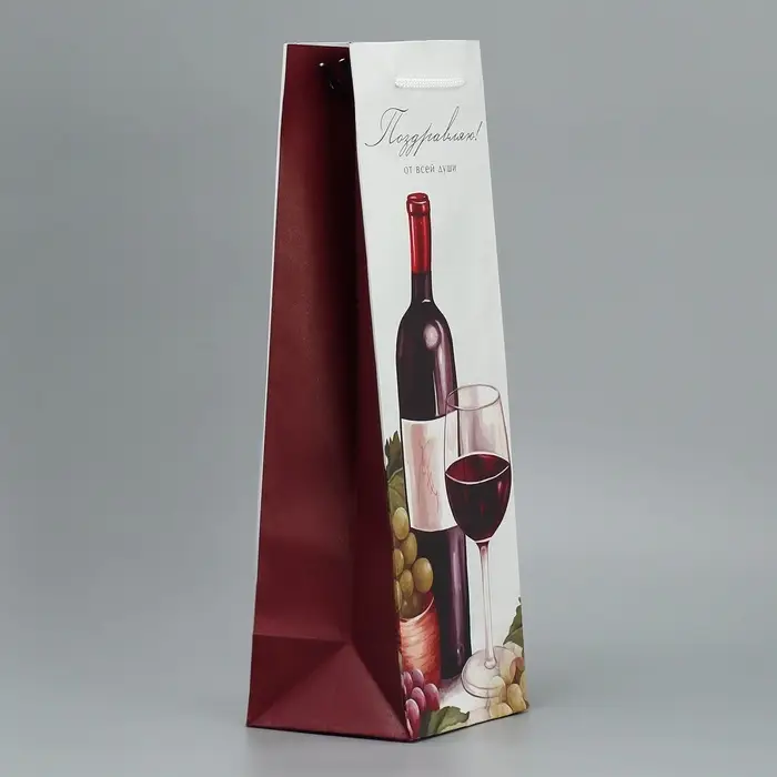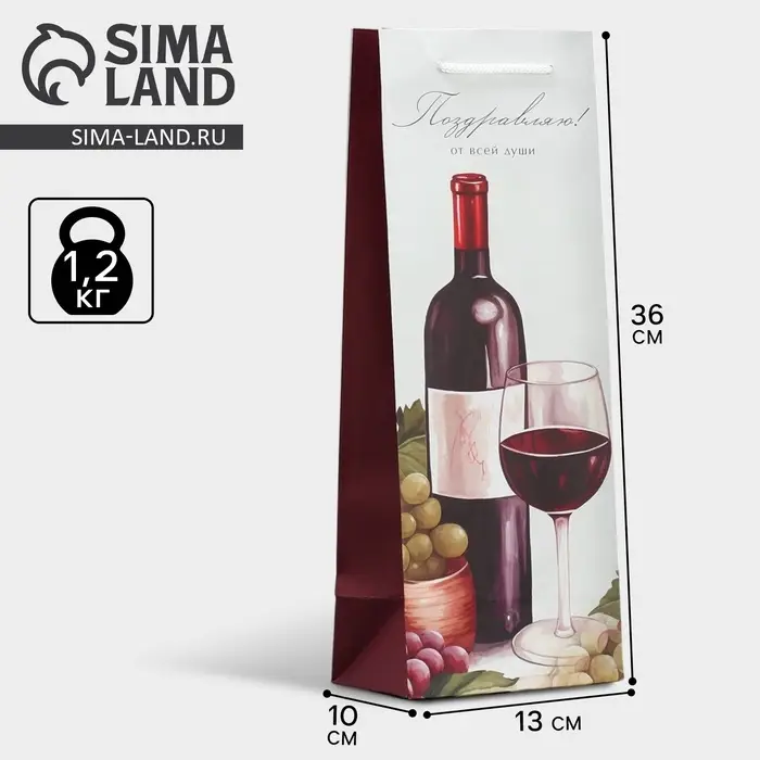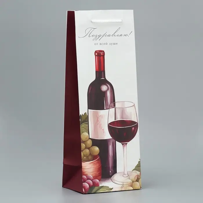 Пакет подарочный под бутылку, упаковка, «От всей души», 36 х 13 х 10 см