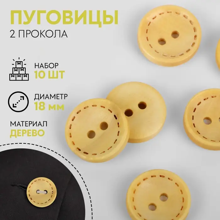 Пуговицы деревянные «Круг», 2 прокола, d=18 мм, набор 10 шт., светло-бежевые