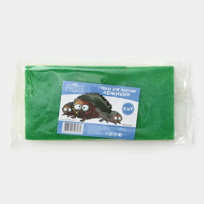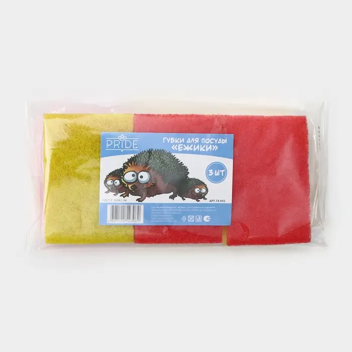 Губка для посуды с чистящим слоем PRIDE, 3 шт, 100×65×30 мм, МИКС