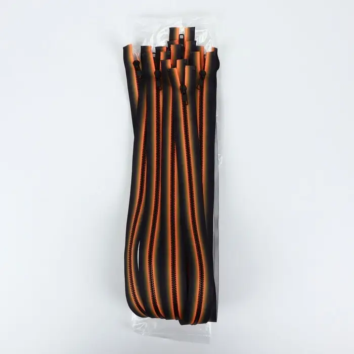 Пластиковые зубцы не истираются. Конструкция износостойкая, не выцветает. Бегунок плавно скользит по застёжке.