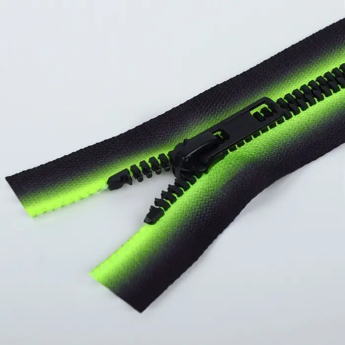 Пластиковые зубцы не истираются. Конструкция износостойкая, не выцветает. Бегунок плавно скользит по застёжке.