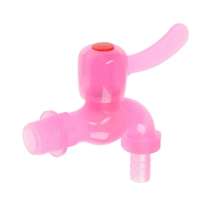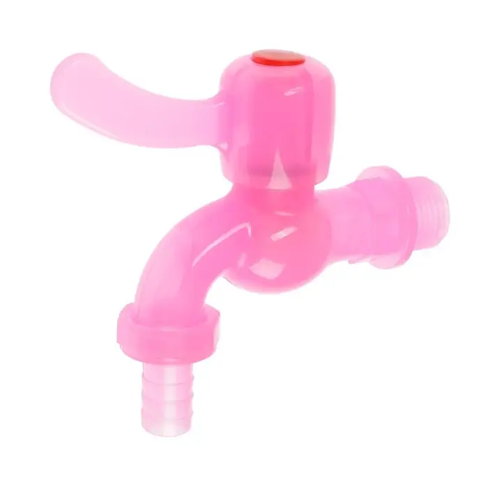 Кран водоразборный ZEIN, 1/2", со штуцером, с плоской ручкой, PP, шаровой механизм, розовый