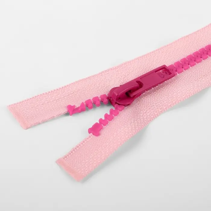 Пластиковые зубцы не истираются. Конструкция износостойкая, не выцветает. Бегунок плавно скользит по застёжке.