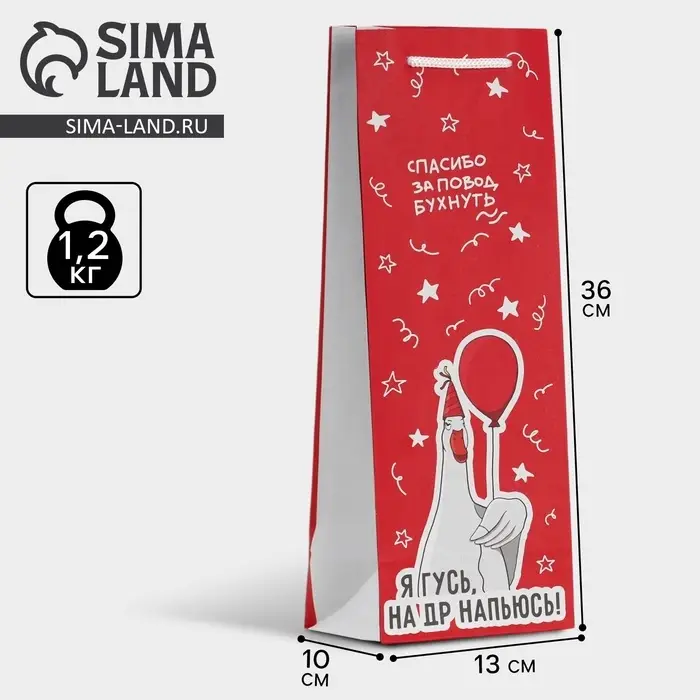 Пакет подарочный под бутылку, упаковка, «Гусь», 36 х 13 х 10 см