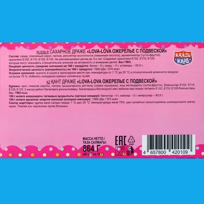 Сахарное драже " Lova-Lova" в виде ожерелья c подвеской" - это оригинальный сладкий подарок для мальчиков и девочек! С этой пудрой вы погрузитесь в захватывающее путешествие по разнообразным вкусам и ароматам, которые точно разнообразят вашу повседневность. Такой десерт в индивидуальной упаковке с ярким дизайном можно взять с собой на прогулку, в поездку, путешествие, в детский сад или школу. Такое угощение придется по вкусу любому сладкоежке! Прекрасный подарок детям на любой праздник.