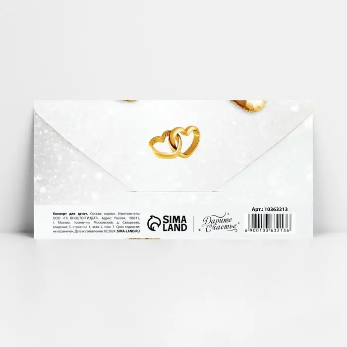 Конверт для денег «С днём свадьбы», 16.5×8 см