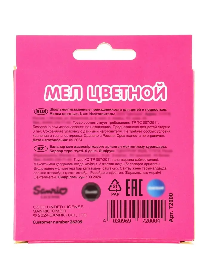 Мел цветной «Kuromi»,6 шт., квадратное сечение 1 × 1см