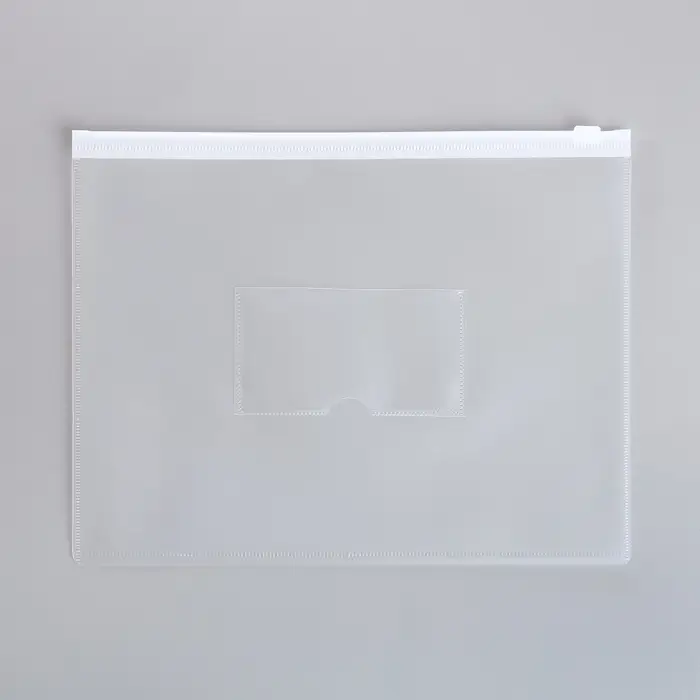 Папка-конверт на ZIP-молнии A5, 150 мкм, Calligrata, карман для визитки, прозрачная, белая молния