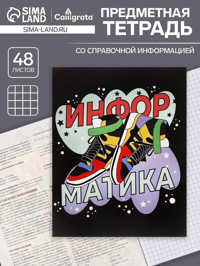 Тетрадь предметная 48 листов в клетку Calligrata, «Кеды. Информатика», картонная обложка