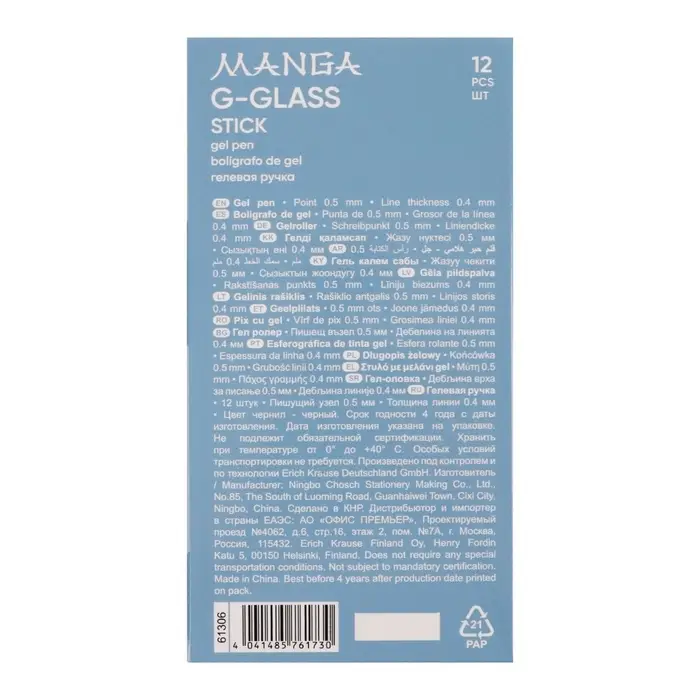 Ручка гелевая ErichKrause "G-Glass Stick Manga" черная, игольчатый узел 0.5 мм, увеличенный запас чернил, микс