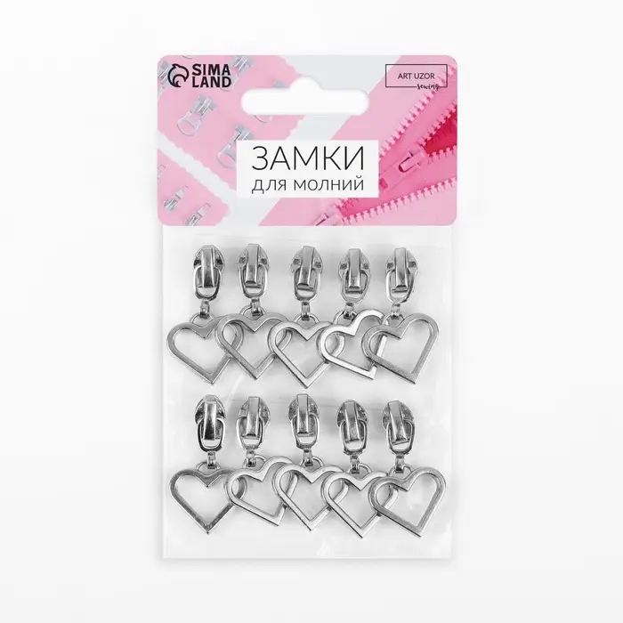 Бегунок для молнии «Спираль», №3, «Сердце», 10 шт., цвет никель