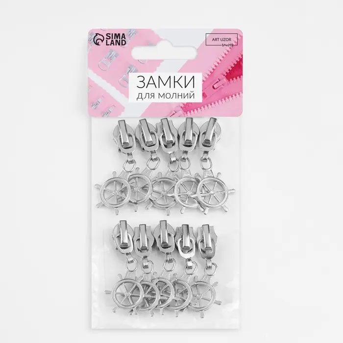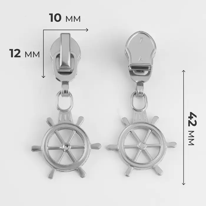 Бегунок для молнии «Спираль», №7, «Штурвал», 10 шт., цвет никель