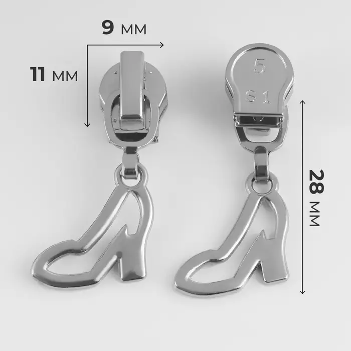 Бегунок для молнии «Спираль», №5, «Туфелька», 10 шт., цвет никель