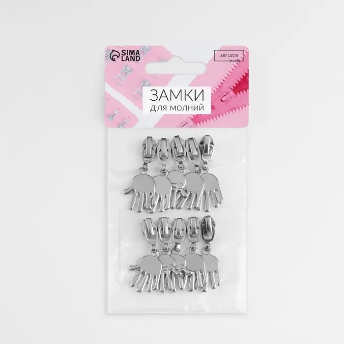 Бегунок для молнии «Спираль», №3, «Ладонь», 10 шт., цвет никель