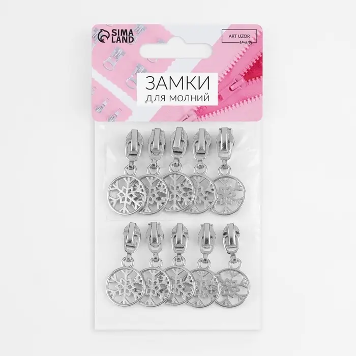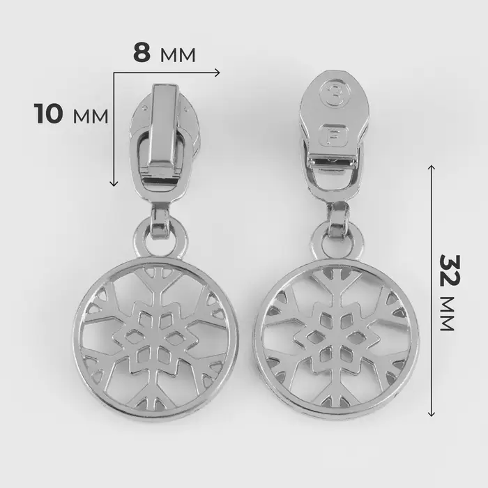 Бегунок для молнии «Спираль», №3, «Снежинка», 10 шт., цвет никель