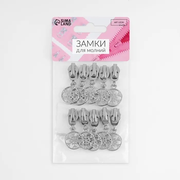 Бегунок для молнии «Спираль», №7, «Снежинка», 10 шт., цвет никель