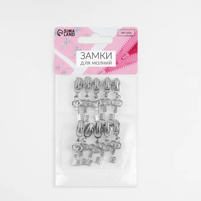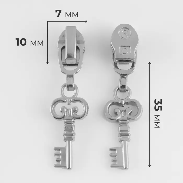 Бегунок для молнии «Спираль», №3, «Ключ», 10 шт., цвет никель