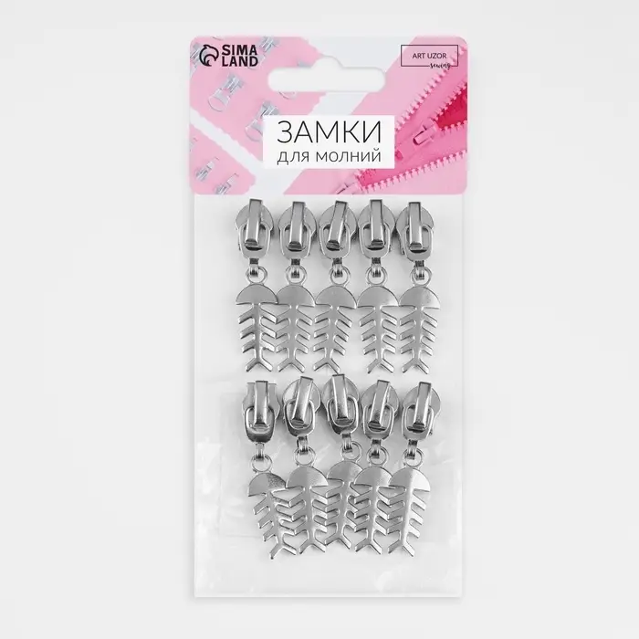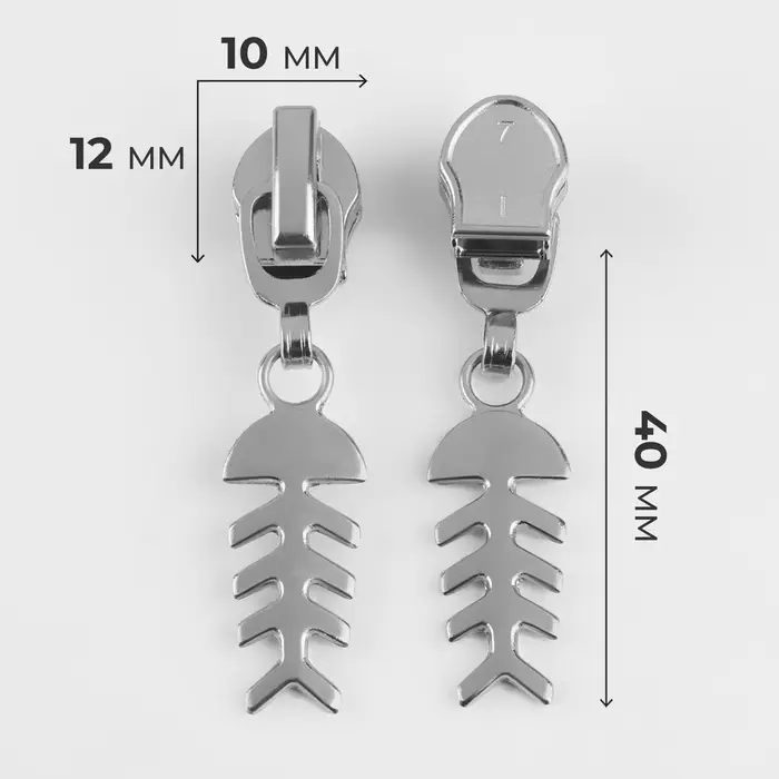 Бегунок для молнии «Спираль», №7, «Рыба», 10 шт., цвет никель