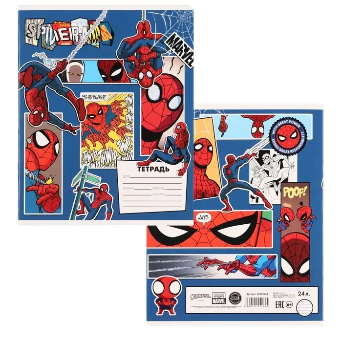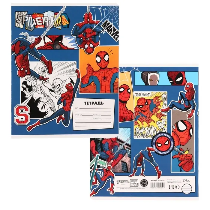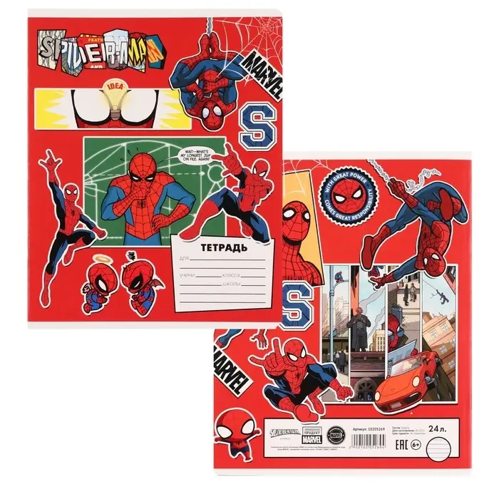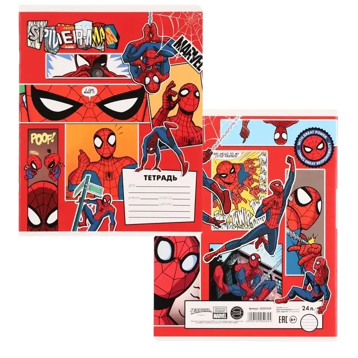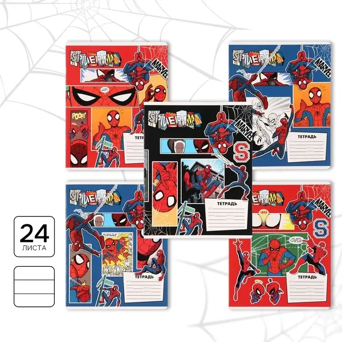 Тетрадь в линейку 24 листа, 5 видов МИКС, обложка мелованный картон, «Человек-паук»