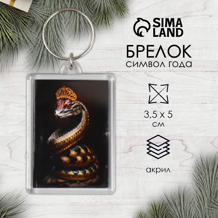 Брелок для ключей на кольце «Змея с короной», акрил, 3.5×5 см